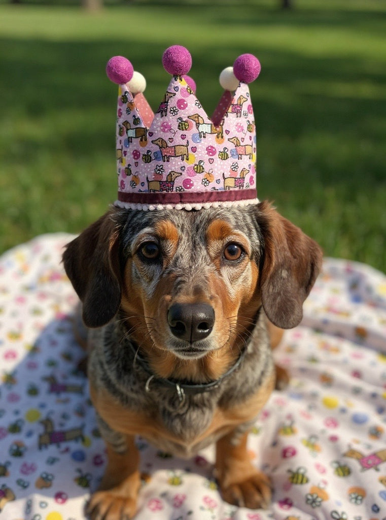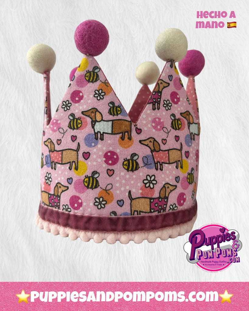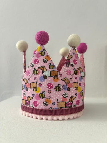 Handmade Birthday Crown - Bee Happy Dachshunds Pink