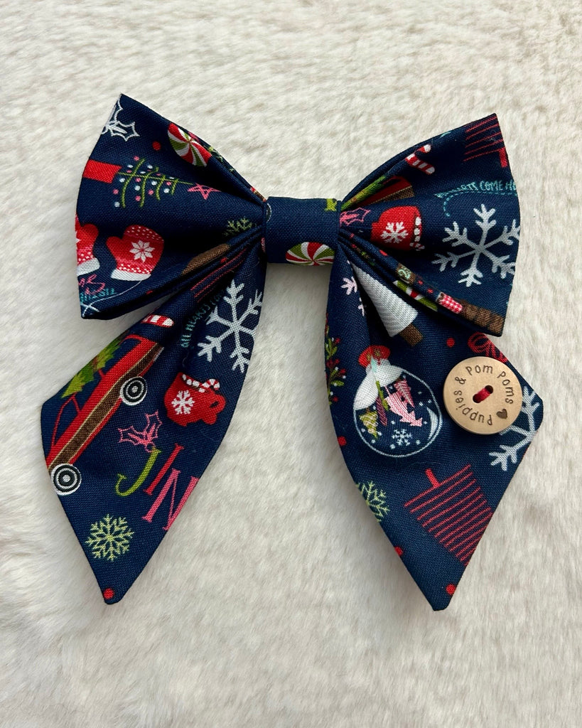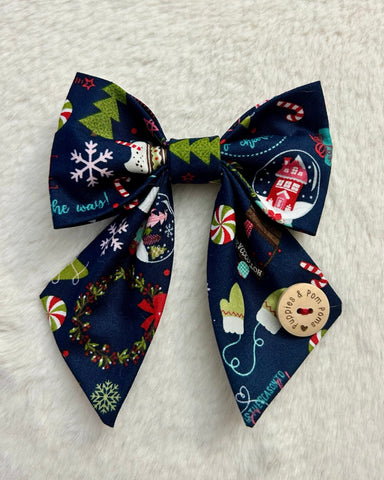 Handmade Christmas Sailer Bow - Merry Christmas Wishes