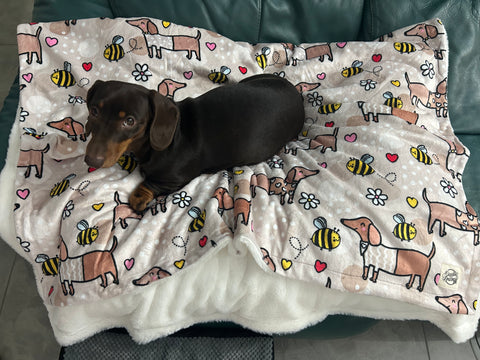 Beige - Bee Happy Dachshund - Faux Fur Blanket